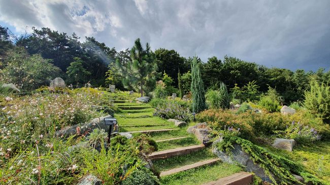 시원한 바닷바람을 맞으며 서해안을 조망할 수 있는 이곳은 다양한 여름꽃들이 만개해 싱그러움을 더하고 있다.