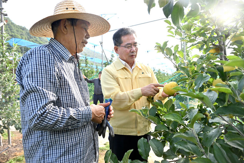 뜨거운 한여름 2025년 8월 5일(화) 오전 8시, 군위군 ‘골든볼’ 첫 수확 이 이루어졌다. 수확 현장에는 김진열 군위군수도 함께하였다.