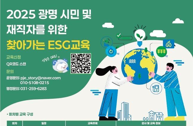 광명시(시장 박승원)는 `시민과 기업이 함께하는 환경·사회·지배구조(ESG) 실천`을 주제로 `찾아가는 ESG 교육`을 진행한다.