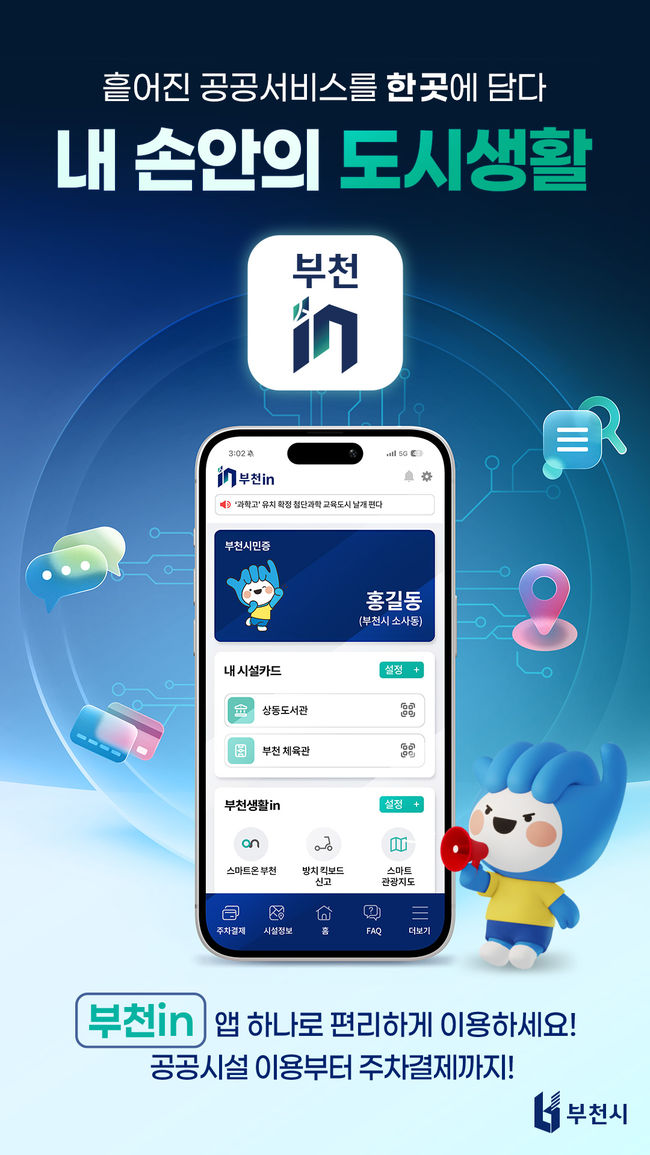 지난 7월 1일 정식 운영을 시작한 ‘부천in’은 부천시민증 기반의 스마트도시 통합 플랫폼으로, 공영주차장 자동 할인과 무정차 정산, 공공시설 예약, 주민자치 프로그램 신청, 시정 정보 확인 등 다양한 생활 서비스를 제공한다.