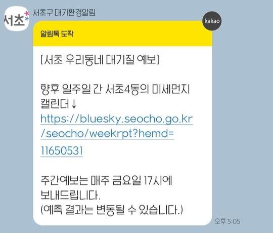 서초구, 우리동네 대기질 알림 서비스 본격 제공