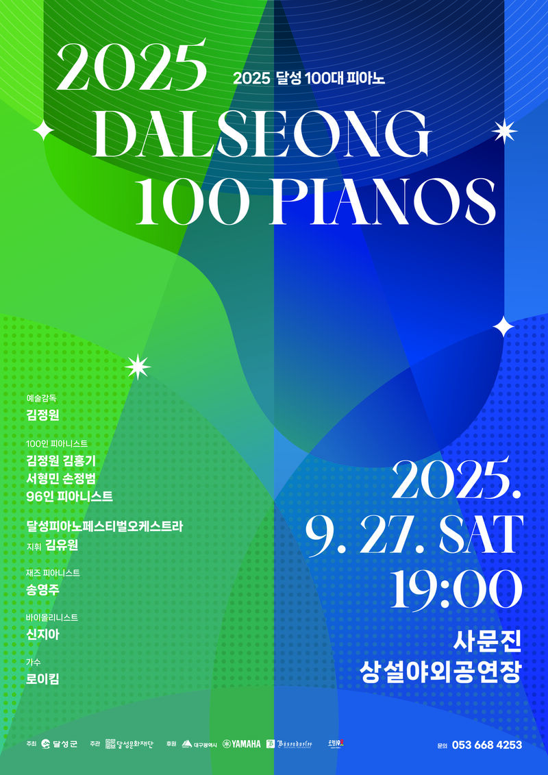 (재)달성문화재단(이사장 최재훈)은 오는 9월 27일 저녁 7시, 문화체육관광부 주관 ‘로컬 100’에 선정된 바 있는 달성군 대표 축제 ‘달성 100대 피아노’를 사문진 상설야외공연장에서 개최한다고 밝혔다.