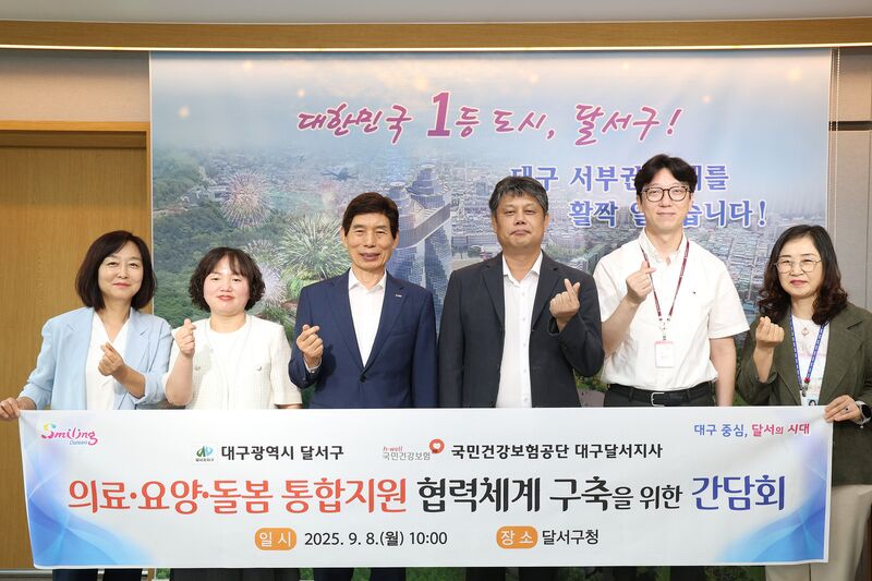 대구 달서구(구청장 이태훈)는 8일 국민건강보험공단 달서지사(지사장 김승국)와 함께 지역사회 통합돌봄 협력체계 구축을 위한 간담회를 열고, 2026년부터 본격 시행될 통합돌봄 사업의 성공적 추진 기반을 마련했다.