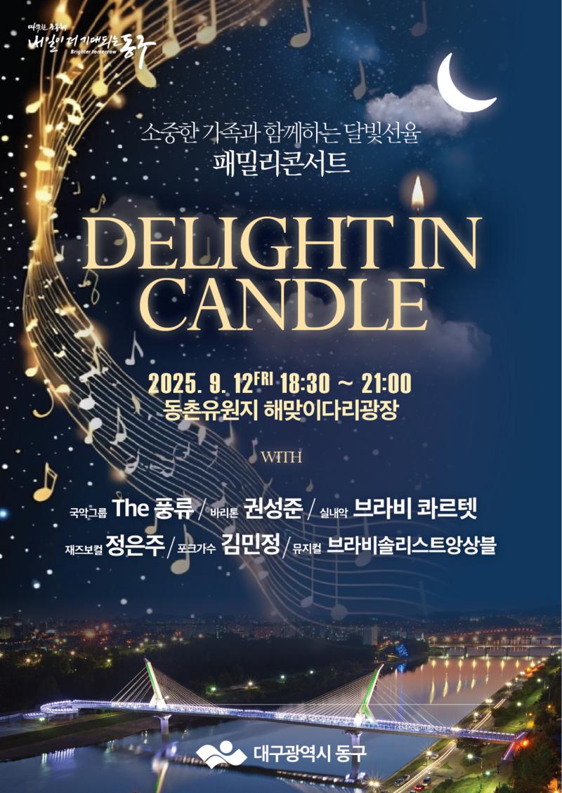 대구 동구청(구청장 윤석준)은 오는 12일 오후 6시 30분, 동촌유원지 해맞이 다리 광장(효목동 970)에서 2025 동구 패밀리콘서트 ‘Delight in Candle을 개최한다.