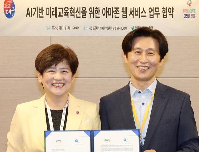 대구시교육청(교육감 강은희)은 9월 11일 오전, 대한상공회의소(서울)에서 `아마존 웹 서비스 코리아 (공공부문 대표 윤정원)`와 인공지능 시대 필요한 미래 핵심 인재 양성을 위한 업무 협약을 체결했다