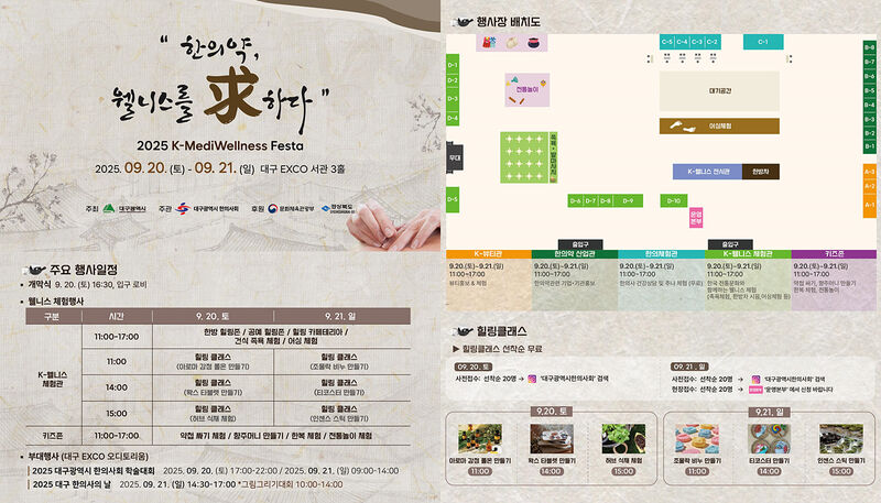 대구광역시는 오는 9월 20일(토)부터 21일(일)까지 이틀간 ‘2025 K-MediWellness Festa’를 대구 엑스코 서관 3홀에서 개최한다.