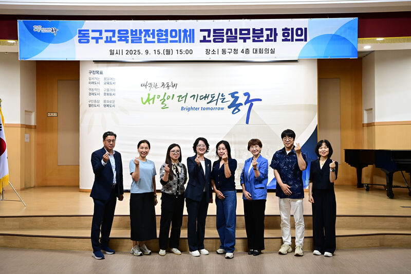 이날 회의에서는 동구 관내 고등학교 운영(부)위원장, 市 교육청 장학관, 구청 관계 공무원 등 10여 명이 참석했으며, 지역 고등학교 교육환경 개선 및 학력 격차 해소 방안, 진로진학센터 맞춤형 지원방안 등 다양한 현안을 함께 논의했다.