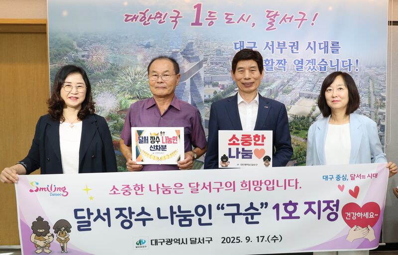 이태훈 달서구청장은 “소중한 나눔을 몸소 실천해 주신 신차분 어르신께 깊이 감사드린다”며 “이번 『장수 나눔인 구순』 지정을 계기로 어르신들의 삶이 존중받고, 더 건강하고 행복한 지역사회로 도약하길 기대한다”고 말했다.