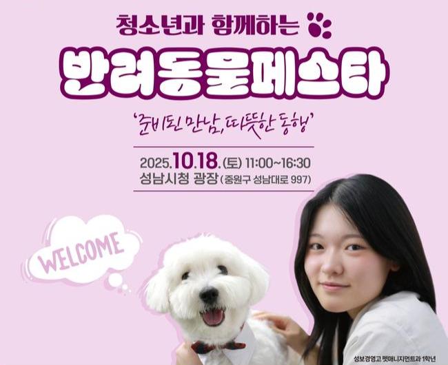 성남시(시장 신상진)는 오는 10월 18일 오전 11시∼오후 4시 30분 시청 광장에서 `2025. 반려동물 페스티벌`을 연다.