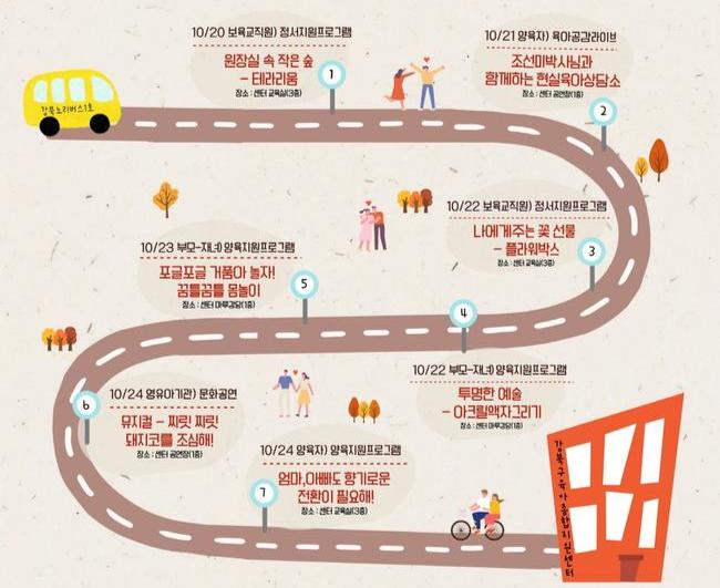 서울 강북구(구청장 이순희)는 강북구육아종합지원센터가 오는 10월 20일(월)부터 24일(금)까지 보육주간 기념행사 `북적북적 페스타-보육에 물들다`를 개최한다고 밝혔다.