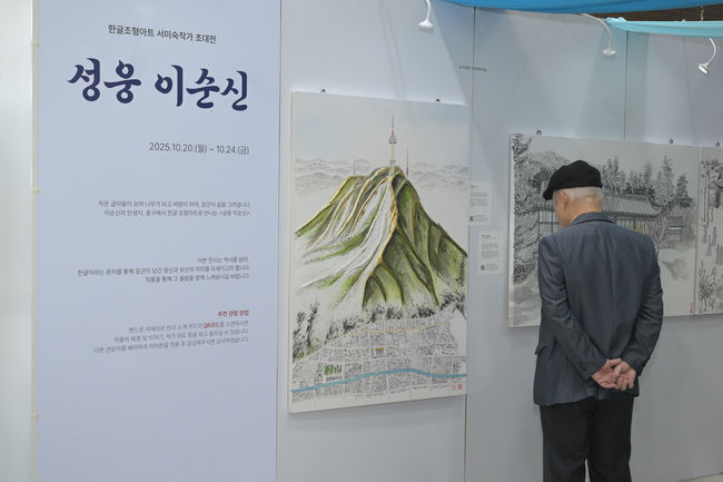 전시는 이순신 장군의 생애를 따라 구성됐다. 장군이 태어난 중구의 풍경을 담은 ‘남산과 중구의 이순신’, 무과 급제를 배경으로 한 ‘문인에서 무인으로’, 그리고 한산도 대첩과 노량대첩 등 군사적 업적을 담은 작품들이 포함됐다. 특히 각 작품 안에는 장군의 기록과 장면을 한글 자모로 세밀하게 재현해 관람객에게 몰입감을 제공한다.