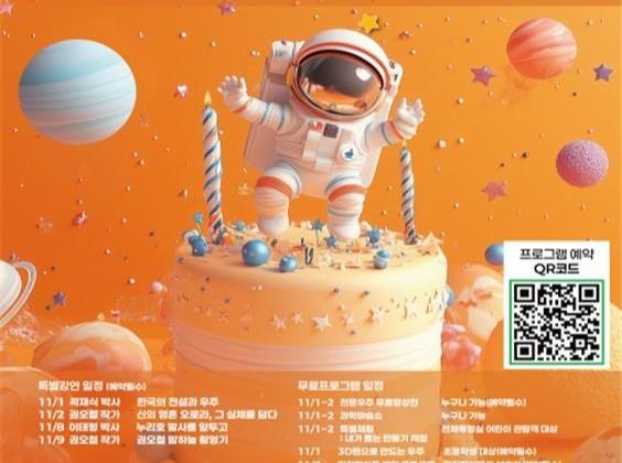 부대행사로는 ▲3D펜으로 키링 만들기(11월 1일) ▲행성 네온사인 조명/달 무드등 만들기(11월 2일) ▲누리호, 망원경, 우주왕복선 등 모형 만들기(11월 1~2일) ▲올해 가장 큰 달인 `슈퍼 문 야간관측`(11월 5일) 등이 마련됐다.