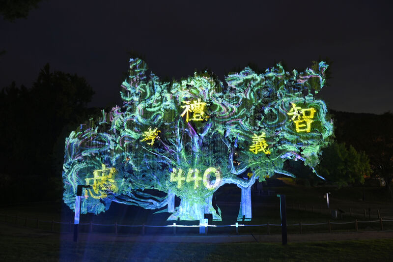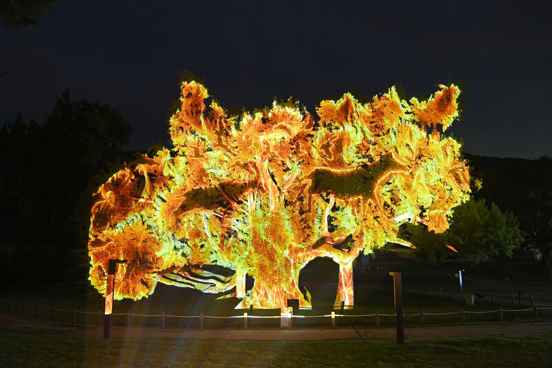 영상은 440년의 세월을 품은 은행나무에 투사되며, 나무의 생장 과정을 유교의 ‘깨달음’과 ‘결실’ 가치에 빗대어 표현한 미디어아트 작품이다. 고즈넉한 서원 풍경 속 은행나무가 거대한 화면으로 변해, 빛과 영상이 어우러지며 가을밤 도동서원의 색다른 매력을 보여준다.