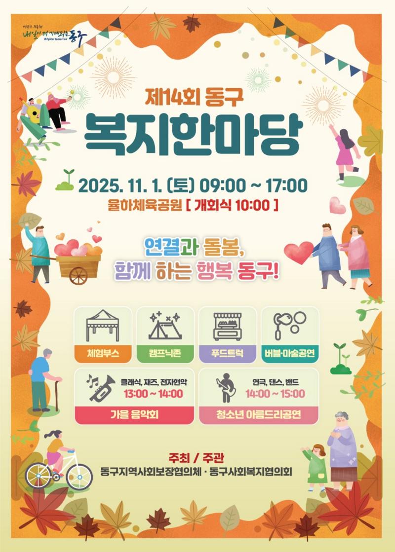 대구 동구청(구청장 윤석준)은 오는 11월 1일(토), 율하체육공원에서 ‘제14회 동구 복지한마당’ 행사를 개최한다고 밝혔다.