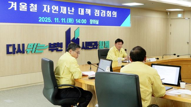 1. 조용익 부천시장이 지난 11일 시청 창의실에서 `2025~2026년 겨울철 자연재난 종합대책 점검회의`를 열고 분야별 대응 방안을 살폈다.부천시는 19일 ‘2025~2026년 겨울철 자연재난 종합대책’을 수립하고 내년 3월 15일까지 폭설·한파 대응에 나선다고 밝혔다.