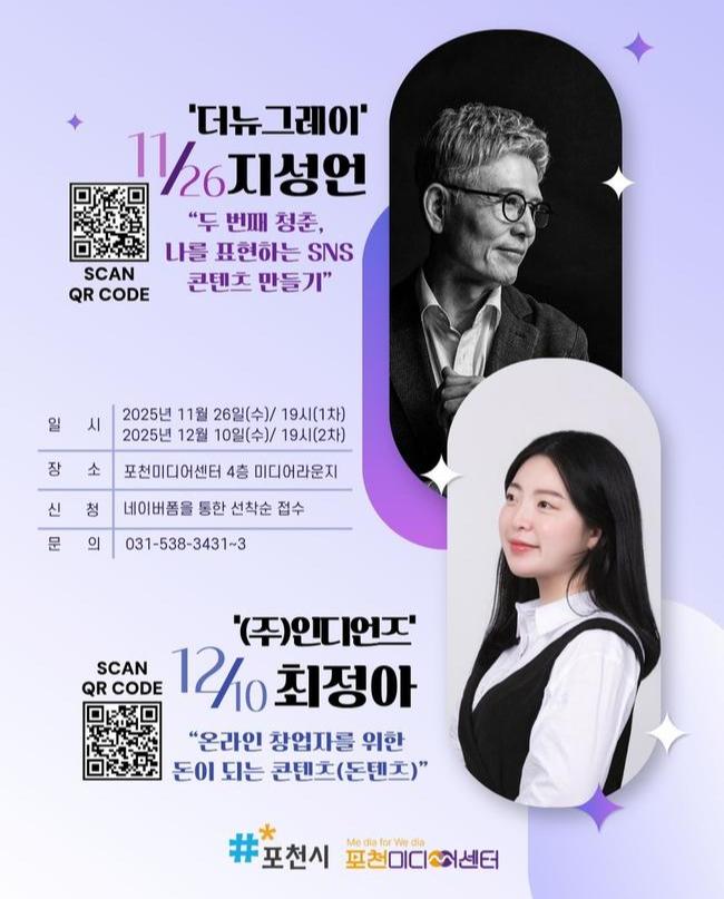 포천미디어센터는 오는 11월 26일과 12월 10일 미디어센터 미디어 라운지에서 시민을 대상으로 `2025 겨울 미디어특강`을 운영한다.
