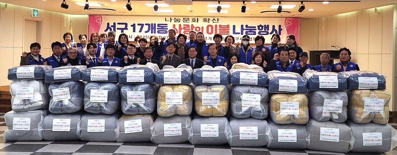 협의회는 추운 겨울을 따뜻하게 보낼 수 있도록 이불을 마련해 서구 17개 동 행정복지센터에 전달했다. 이날 배부된 이불은 동별 10채씩 총 170채로, 관내 취약계층 170세대에 전달돼 지역 나눔문화 확산에 기여했다.