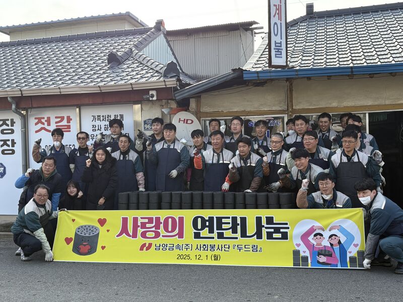 남양금속 관계자는 “추운 겨울을 대비해 조금이나마 도움이 되고 싶어 연탄 나눔에 참여하게 되었고, 앞으로도 지역사회와 함께할 수 있는 사회공헌 활동을 지속적으로 이어가겠다”고 전했다.