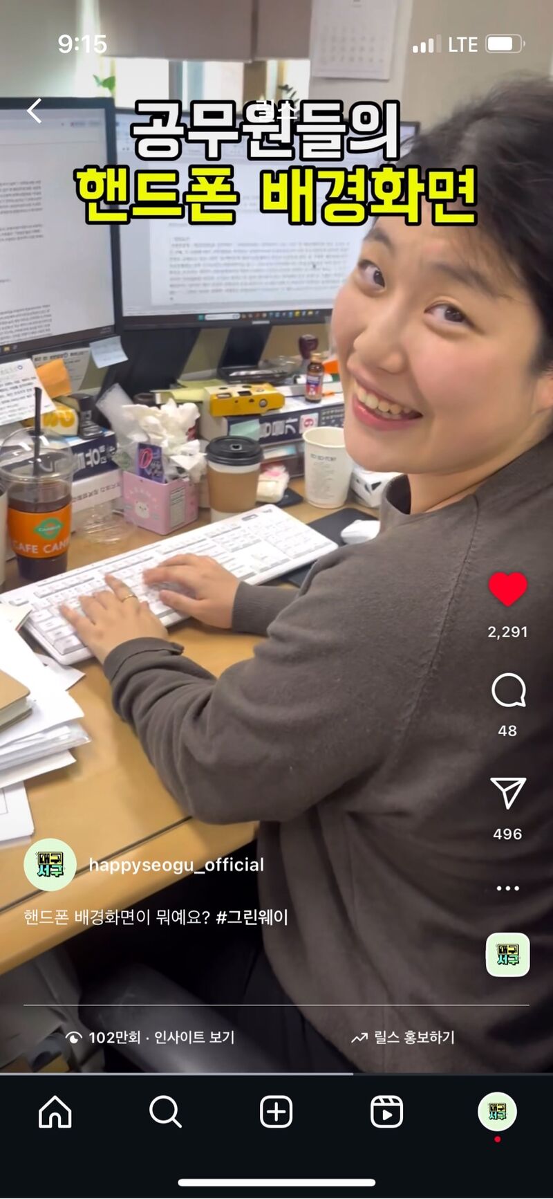공무원 배경 화면 뭐길래?! 대구 서구청 릴스 100만 뷰 찍었다! - 공무원 일상에서 자연스러운 명소 홍보로