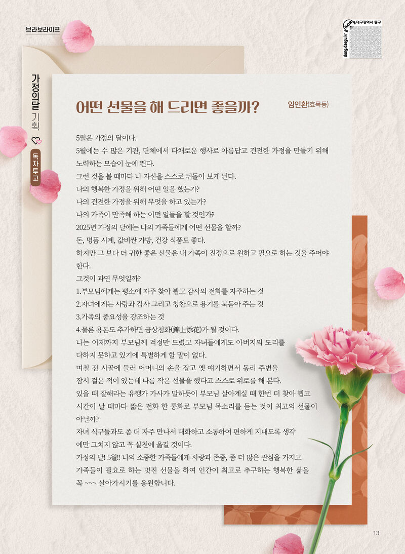 이외에도 가정의 달 특집 독자투고, 어린이 안전사고 예방 방법 등 가정의 달을 풍성하게 해줄 다양한 기사가 실렸다.