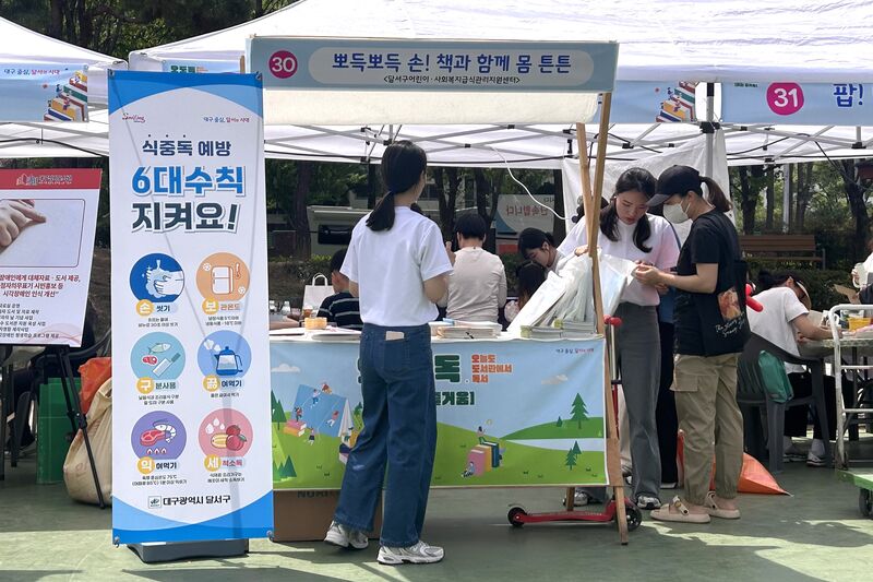 4월 4일 지하철 2호선 용산역에서 캠페인을 시작으로, 4월 9일에는 계명문화대학교에서 보건소와 함께 OX퀴즈 등 다양한 참여형 프로그램을 운영했다. 이어 4월 19일 본리어린이공원에서 열린 ‘북(Book)소리 축제’에서는 달서구 어린이·사회복지급식관리지원센터와 연계하여 홍보 부스를 설치하고, 어린이 및 가족 단위 방문객들에게 손 씻기의 중요성과 식중독 예방 수칙을 쉽고 재미있게 전달했다.