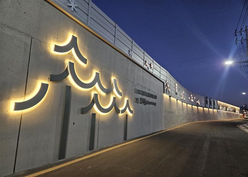 대구 동구청(구청장 윤석준)은 최근 효목지하차도에서 효목네거리 방향으로 설치되어 있는 옹벽 및 방음벽에 공공디자인을 접목한 경관개선사업을 마무리했다.