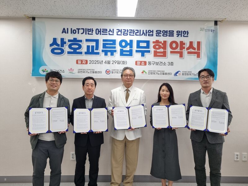 대구 동구보건소는 지난 29일, 재가노인돌봄센터 4개소와 인공지능기반 건강관리 사업의 효율적 추진을 위한 업무협약을 체결했다.